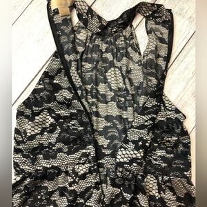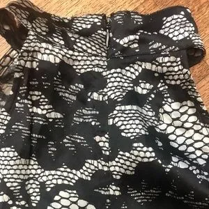 Black and off-White Floral/Lace-look Print Sleeveless with Cutout shoulders