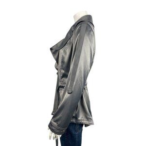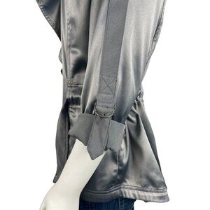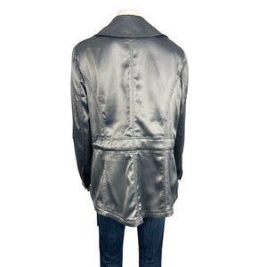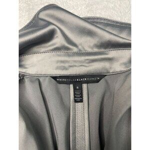 White House Black Market Satin Tie Jacket 8 Gray Silver Roll Tab Sleeves