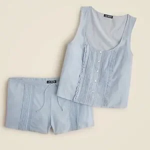 We collaborated with designer (and J.Crew alum) Araks Yeramyan on an exclusive collection of pajamas and lingerie that celebrates our shared love of unexpected color combinations and thoughtful details. This sweet tank and short set comes with lace panels, polished pintucks and ruffle details on top, plus silk trim at the waistband and a subtly sheer finish. The silk in this style is bluesign®-approved and crafted at a LEED®-certified facility whose manufacturing process uses less water and energy—and it's dyed without hazardous chemicals.