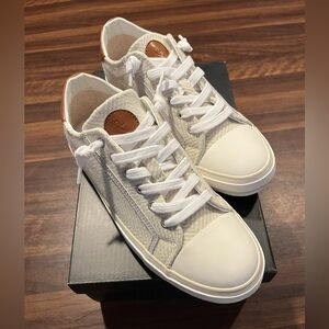 Step out in style with these casual beige sneakers featuring white accents. Perfect for everyday wear, these shoes offer both comfort and fashion.