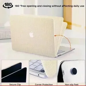 Hard Shell Case for MacBook Pro 13" with Keyboard Cover Beige Textured Slim New