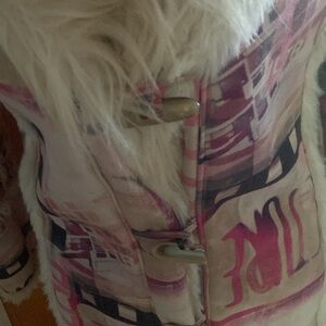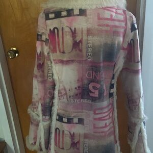 Elevate your wardrobe with this chic women's coat in pink and cream. Perfect for adding a touch of elegance to any outfit.