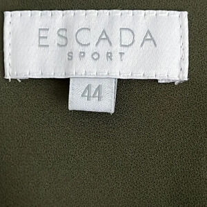 Escada Sport Back Zip Slacks/Pants in Algae - Size 14 (US) . Extremely nice pair of pants in excellent condition. Hidden back zip closure, elastic panels on both sides of the waist, flat center seams front and back, tapered leg hems with side splits. Approximate measurements: 17 1/2" waist, 10 1/2" rise, 30" inseam.