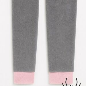 PJ Couture Gray Cat Hooded Pajama Suit M Fleece Pink Trim
