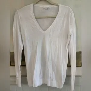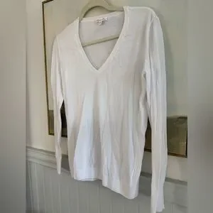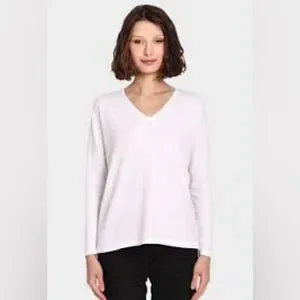 MINNIE ROSE 100% Cotton Long Sleeve V Neck White Size Small