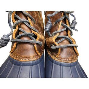 Sperry Top-Sider Womens 6.5 Brown Leather Saltwater Blue Rubber Duck Boots