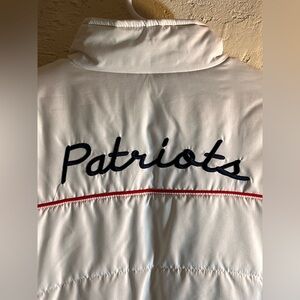 Get ready for game day in this NFL puffer jacket. Not too puffy. Patriots logo on front and Patriots spell out on back