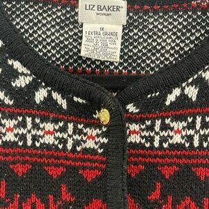 Liz Baker Black and Red Vintage Christmas Cardigan Sweater