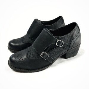 Aetrex Dina Wingtip Oxford Inspired Heeled Black Leather Shoes Size 39