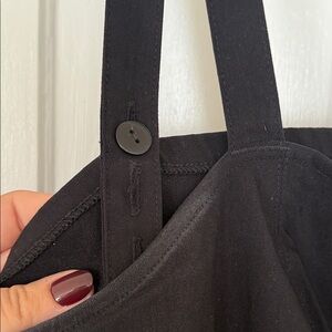 Chic black peplum top featuring gold button accents. Square neck. Adjustable straps. Women’s size 3X (22/24)