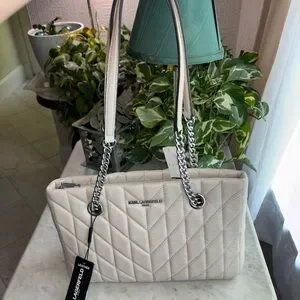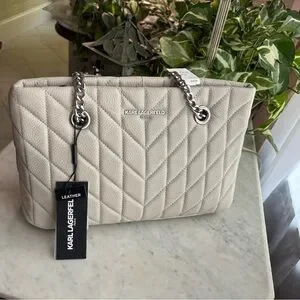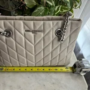 Karl Lagerfeld Chevron Quilted Shoulder Bag - Cream/Gray