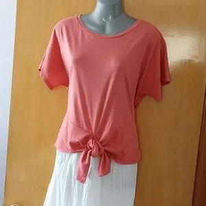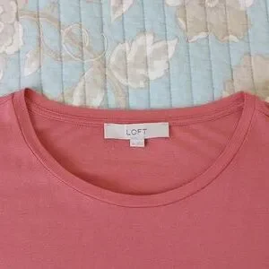 Classy T-Shirt from LOFT. Dress it up or dress it down. Pretty salmon color. Size Medium. Fabric is 60% cotton and 40% modal. Modal gives fabric a silky smooth feel, and this tee is very lightweight and cool feeling when worn. I wore it once. It washed nicely afterwards. No flaws - still like new!