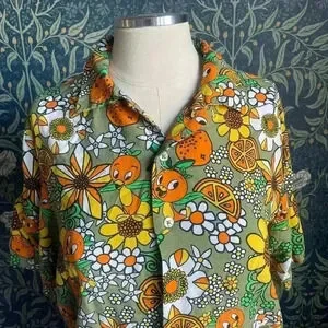 Disney World Parks 50th anniversary vault orange bird camp shirt from 2022. Whether you are planning a visit to Disney World vacation or at home making homemade orange lemonade smoothies, do it in style with your very own orange bird button-down shirt.