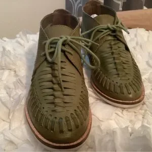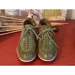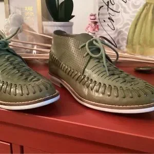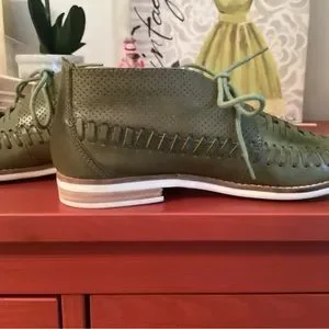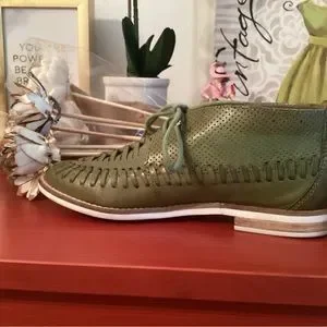 Ankle woven boots, is called the FIO, olive green color. Leather flat woven. Excellent condition. No stains.EUC.
