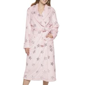 Long pink Plush Robe metallic silver stars small NWT