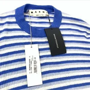 Chic blue and white stripes. Soft crewneck design. Ideal for casual wear.