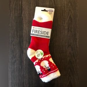 NWT Sofsole Cozy Lodge Socks. Color is Red with White Snowman. Size is Shoe size 5-10. 58% polyester/35% acrylic, 6% spandex/1%rubber.