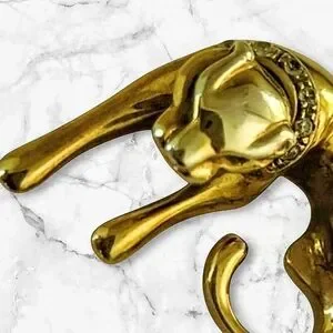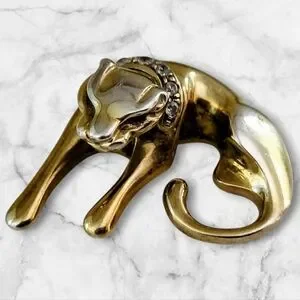 A wonderful vintage piece! This gold pather slide has been in my jewelry box for some time. Such a lovely piece deserves to be shown off. Guess you could say, " I'm letting the cat out of the bag!" Aside from a good polish, great vintage condition.
