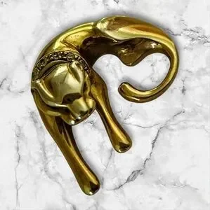 Elegant gold panther brooch adorned with rhinestones. Perfect for adding a touch of luxury to any outfit.