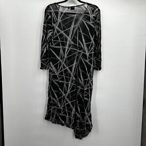 Lisa Bayne Dress Womens Small Black White Mesh Crinkle Long Sleeve Geometric