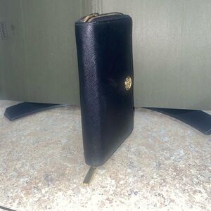Elegant black wallet with signature logo. Sleek and stylish design. Perfect for everyday use.