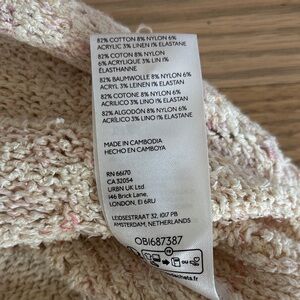 By Anthropologie Small Chic cream knit camisole. Features delicate patterns in Cotton Blend. Perfect for layering or solo wear. Fits Stretchy and Loose