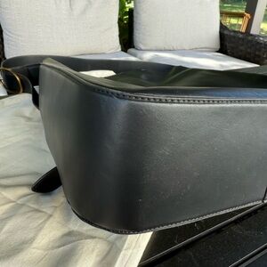 Crafted from genuine leather, this large tote makes a bold fashion statement while conveniently accommodating a laptop and much more. It features a snap closure and an adjustable shoulder strap for added versatility.