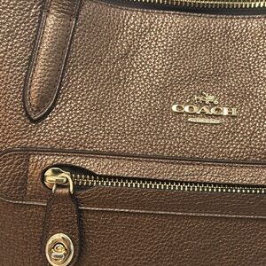 Coach Polished Pebble Leather Taylor Metallic Bronze Tote