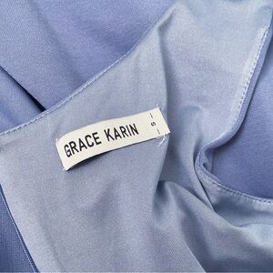 Chic sleeveless mini dress by Grace Karin. Features a flattering wrap design. Perfect for versatile styling.