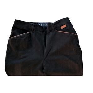 Vintage 90s Ralph Lauren Leather Trim Pants Women 6 Black Camel Tan Trousers