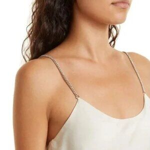 Beautiful satin slip dress. Low back with rhinestone chain detail. Worn once.