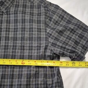 Chaps Men's Black And Gray Plaid Button Down Short Sleeve Shirt