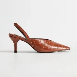 Crocodile skin effect. Slingback. Pointed. Stiletto heel. Elastic strap. Heel 8 cm. Shoe upper: 100% polyurethane. Lining: 100% polyurethane. Insole: 100% polyurethane. Sole: 100% thermoplastic.