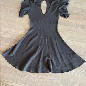 Free People Ruffled Sleeves Knit Brown V-Neck Dress Small