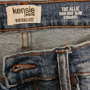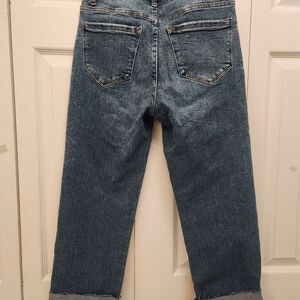Kensington The Allie high rise blue denim jeans with a raw edge hem. Size 8/29. inseam is 27" with the raw edge cuffed.