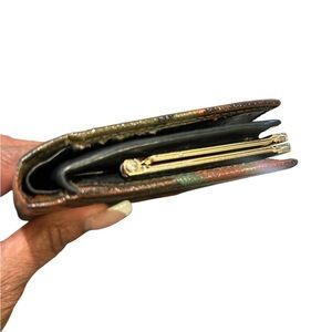 Vivienne Westwood Orange and Brown Checkered Wallet With a KISS Lock Closure
