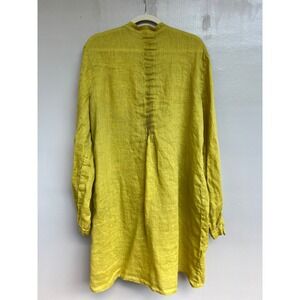 Keywords: Habitat, linen tunic, long sleeve dress, button down shirt, chartreuse, mandarin collar, womens top, womens dress, casual dress, travel dress, xl, extra large