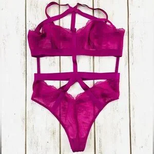 Victoria’s Secret Lace Strappy Bondage Teddy Bodysuit Lingerie Medium