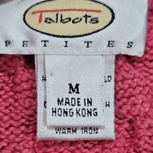 Talbots Vibrant Pink Cotton V-Neck Cable Knit Cardigan Sweater Size M