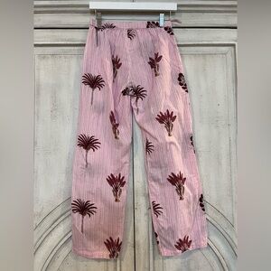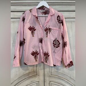 Cozy pink striped pajama set featuring a floral design. Perfect for a comfortable night's sleep.