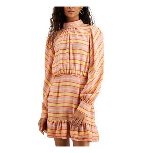 LE RUMI Womens Coral Two Keyholes In Back Cuffed Sleeve Short Peplum Dress M