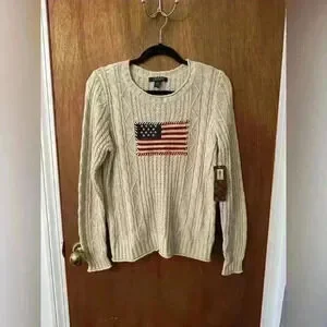 NWT Ralph Lauren Cream American Flag sweater in a size Large But it fits more like a Medium/Large. Not oversized. In amazing condition.