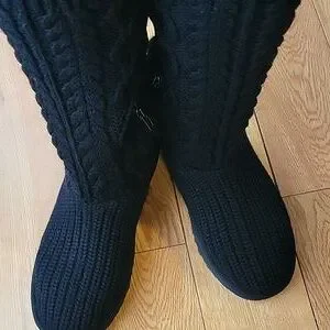 Stylish black knit tall UGG boots. Perfect for cozy wear.