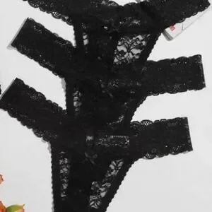 ■ Included is ONE PAIR of black lace thong underwear with a bow on the front of them.