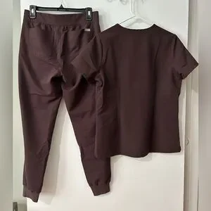 Figs scrub set in Espresso. Includes V-neck top and jogger pants. Size Small. *LIKE NEW!