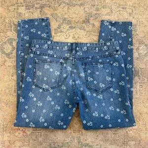 Free People EUC Blue Floral Cropped Skinny Jeans