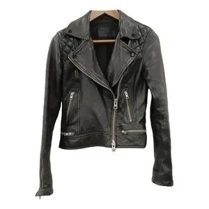 AllSaints Women's Leather Conroy/ Biker Jacket in Ink Size US 4
