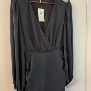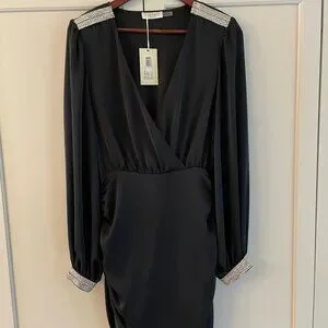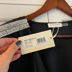 Ramy Brook Foxy Embellished Black Ruched Mini Dress Size NWT 4
