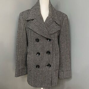 JONES NEW YORK Wool Blend Black & White Double Breasted Coat Size 12 Career Warm