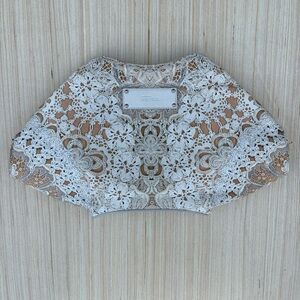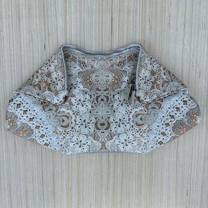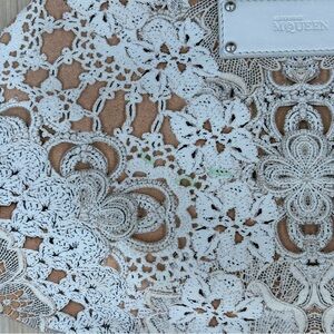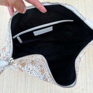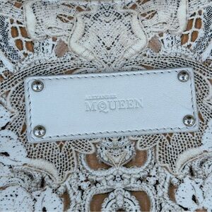 100% authentic Alexander McQueen De Manta lace print silk-satin large clutch. There is a tiny green spot on the front; otherwise, this beauty is in excellent condition! No dust bag. Retail $540.